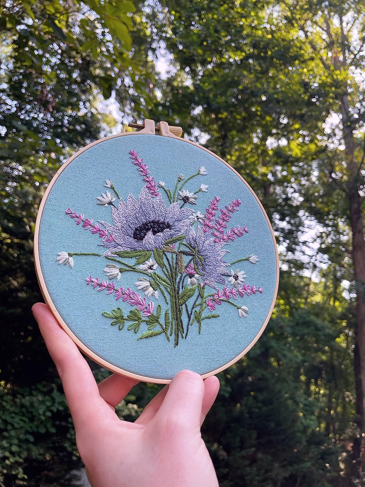 Everything included: fabric, hoop, floss, needles, tutorial